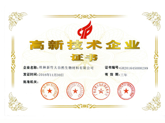 近日从区科技厅传来喜讯,根据“高新技术企业认定管理办法”和“高新技术企业认定管理工作指引”有关规定,经过全国高新技术企业认定管理工作领导小组办公室、广西区科学技术厅、广西区财务厅、广西区国税局、高新区地税局等有关部门的严格审核,我公司于2016年11月顺利通过广西高新技术企业认定。